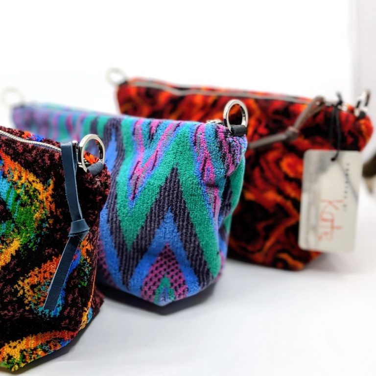 Kate makes a range of beautiful bags using repurposed materials including train and bus moquette.